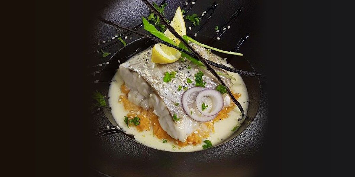 Filet de Merlu de nos côtes, beurre au lait de coco, mousseline de carottes à la vanille